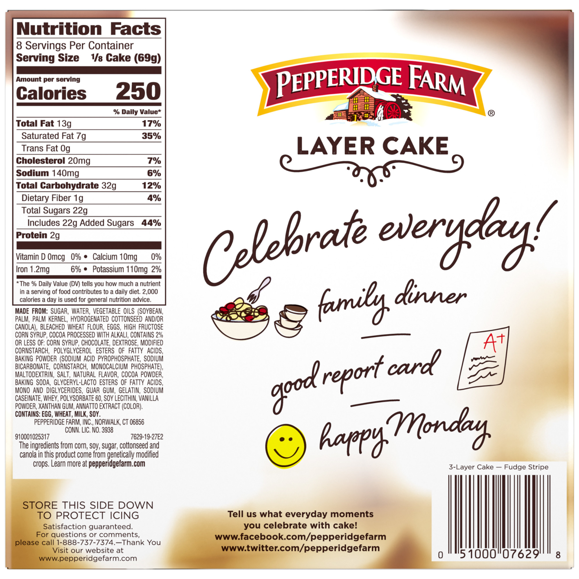 Pepperidge Farm Frozen Chocolate Fudge Stripe Layer Cake 19 6 Oz Box Walmart Com
